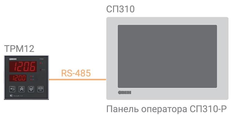 Для оперативной и точной оценки ситуации производственных процессов эффективным средством является система мониторинга или визуализации. Система мониторинга заменяет множество дорогих механических самописцев всего одним ПК или панелью оператора. Благодаря наличию интерфейса RS-485 у прибора ТРМ10 имеется возможность подключения к панели оператора, визуализация которой позволяет упростить взаимодействие оператора с техническим процессом.